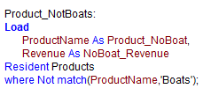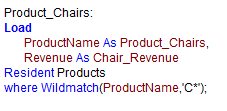 Now to load a table with ProductName IN  (‘Chairs’,’Tables’,’ArmChairs’) you will use match()